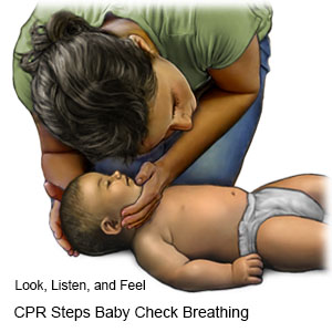 Give 2 breaths (1 second for each breath) into the newborn's mouth. The newborn's chest will rise each time you give a rescue breath if his or her airway is open. Do not give large breaths. Do not breathe hard or fast. Take a normal breath for yourself after each breath that you give.