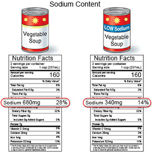 Ways to get less sodium: If you are used to the flavor of salt, it will take time to get used to low-sodium foods. Your healthcare provider or dietitian can help you create a plan for lowering sodium. The plan will be specific to your needs and your family's needs. You may focus on 1 or 2 changes each week, such as the following: