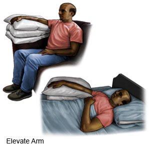 Elevate your finger above the level of your heart. This can help reduce swelling. Prop your arm or hand on a pillow. This should be done as often as you can for the first 1 to 3 days after your injury.